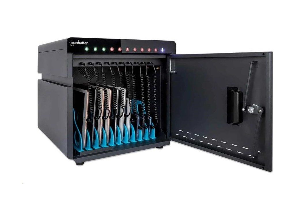 SKU style="color: #3333; text-transform: none; text-indent: 0px; letter-spacing: normal; font-family: Raleway, sans-serif; veľkosť písma: 13px; štýl písma: normal; váha písma: 400; medzery medzi slovami: 0px; float: none; display: inline !important; white-space: normal; orphans: 2; widows: 2; background-color: #ffffff; font-variant-ligatures: normal; font-variant-caps: normal; -webkit-text-stroke-width: 0px; text-decoration-thickness: initial; text-decoration-style: initial; text-decoration-color: initial;">: 715942 Návštevníci, hostia a zamestnanci nosia svoje mobilné zariadenia na rôzne miesta. Poskytnite svojim ľuďom možnosť nabíjať vybité batérie smartfónov alebo tabletov pomocou 10portovej stolovej nabíjacej skrine - 180 W od spoločnosti Manhattan. Je to ideálne riešenie nabíjania pre reštaurácie, školy, telocvične, lekárske ordinácie, univerzity, hotely, autopožičovne a ďalšie zariadenia. Používatelia mobilných zariadení chcú svoje zariadenia rýchlo späť. Vďaka technológii Power Delivery 3.0 na všetkých 10 portoch USB-C, nebudú musieť dlho čakať. S výkonom na jeden port až 3 A / 18 W sú smartfóny, tablety a iné zariadenia USB pripravené na prevádzku v okamihu. LED diódy umiestnené na prednej strane vám ukážu, kedy je batéria úplne nabitá. Všetky tieto drahé zariadenia sú veľmi zodpovedné, ale bezpečnostné mechanizmy v tejto skrini sú rovnako rozsiahle. Poskytuje ochranu proti preťaženiu, nadprúdu, skratu, napäťovým špičkám a dokonca aj proti úderu blesku. Zlodeji a vandali nemajú šancu proti pevnému a odolnému kovovému krytu tejto stolovej nabíjacej skrine. Bezpečne ho uzamknite pomocou priloženej 2-dielnej sady kľúčov a umožnite prístup len oprávneným osobám. Zabudovaný ventilátor a vetracie otvory odvádzajú teplo a udržiavajú všetky zariadenia v chlade. Gumové nožičky zabraňujú skrinke v skĺznutí na akomkoľvek povrchu. Udržujte svoje zariadenia usporiadané v 10 priehradkách s rozmermi 264 (D) x 22 (Š) x 235 (V) mm/10.39 x 0.87 x 9.25 in. každý. Na usporiadanie nabíjacích káblov použite káblový manažment zabudovaný v priehradkách (k dispozícii v spoločnosti Manhattan). Keďže táto nabíjacia skrinka má namiesto zásuviek USB-C porty, nepotrebujete ďalšie sieťové nabíjačky. Vstup striedavého prúdu na zadnej strane je konektor C20, ktorý umožňuje nahradiť dodaný napájací kábel iným káblom podľa vašej oblasti.