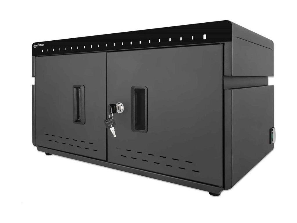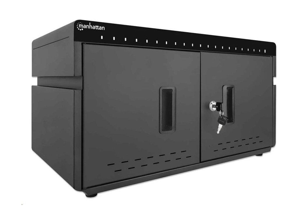 Stolná nabíjacia skrinka MANHATTAN - 20 portov, 360 W, prepäťová ochrana, tiché vetranie, kovový kryt, čierna