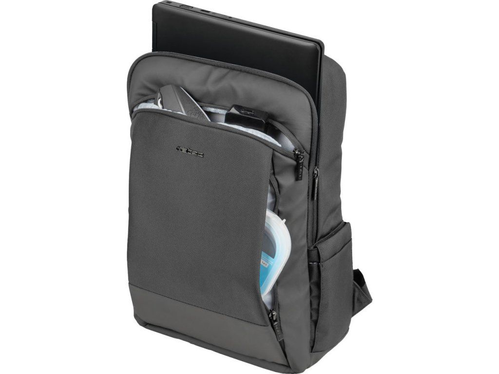 - Hlavní prostor se dvěma polstrovanými kapsami na notebook a tablet se zapínáním na suchý zip chránící zařízení před poškozením.