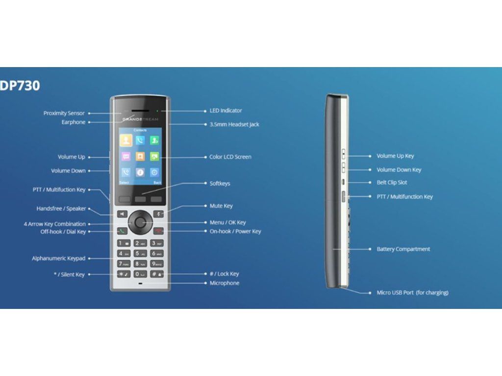 DP730 je špičkový bezdrôtový telefón, ktorý umožňuje používateľom používať sieť VoIP v akomkoľvek prostredí, či už ide o sklad, obytné, maloobchodné alebo obchodné priestory. Model DP730 je určený pre firemných aj domácich používateľov. Telefón je podporovaný základňovými stanicami Granstream DP752 a DP750 DECT VoIP. Toto pripojenie vám poskytuje vynikajúci výkon a mobilitu.