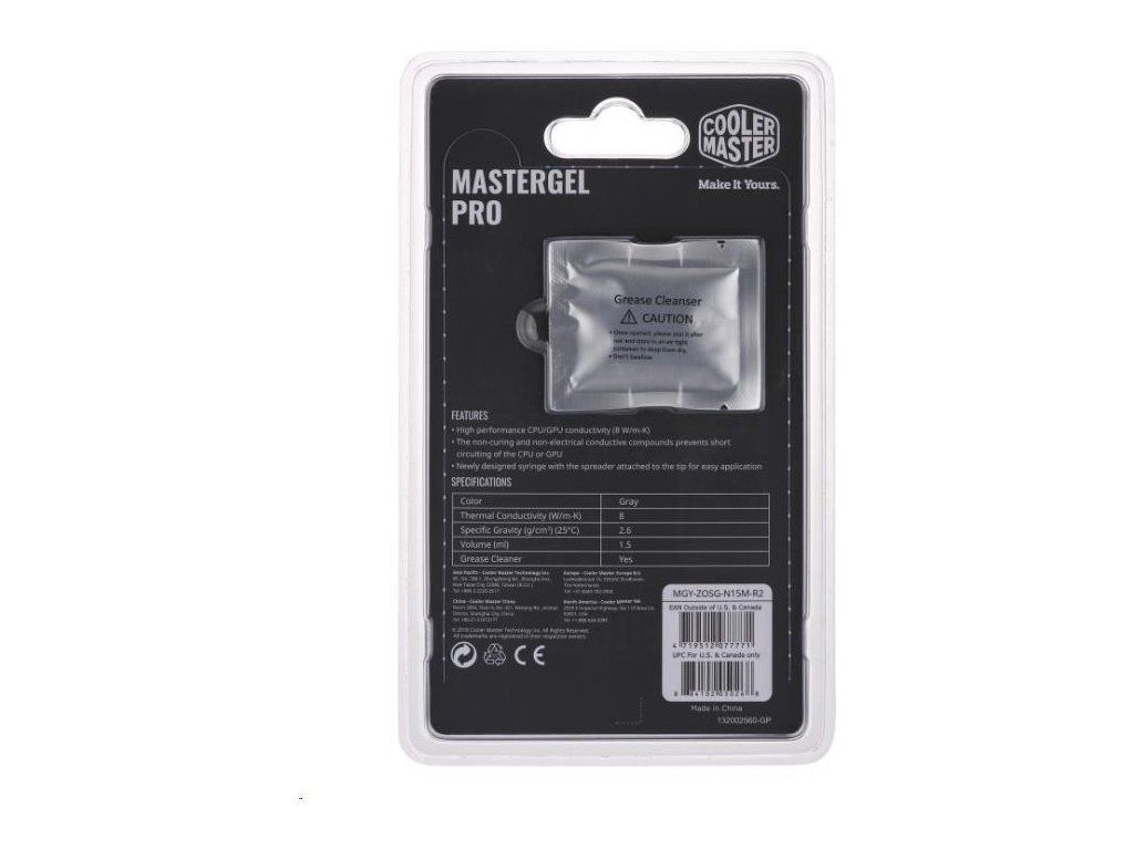 Tepelná pasta Cooler Master pre CPU Master Gel Pro V2, tep. vodivosť 8 W.m, 1.5 ml, 4 g, sivá