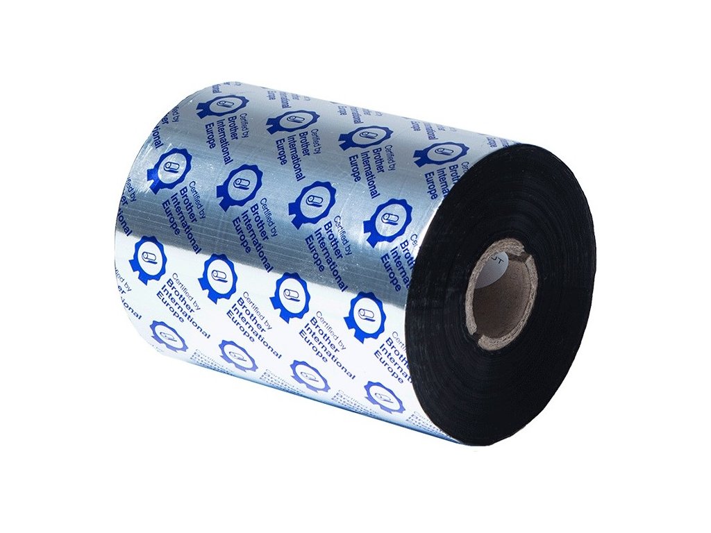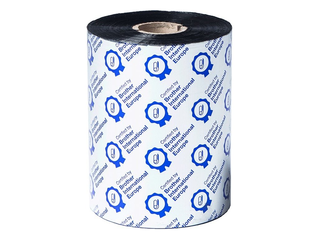 BWP-1D600-110 prémiová termotransferová vosková páska s černým barvivem o délce 600 m a šířce 110 mm certifikovaná společností Brother International Europe.