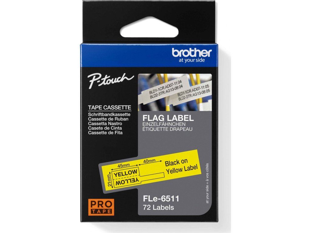 BROTHER FLe-6511 předřezané štítky - černá na žluté, 21 mm šířka