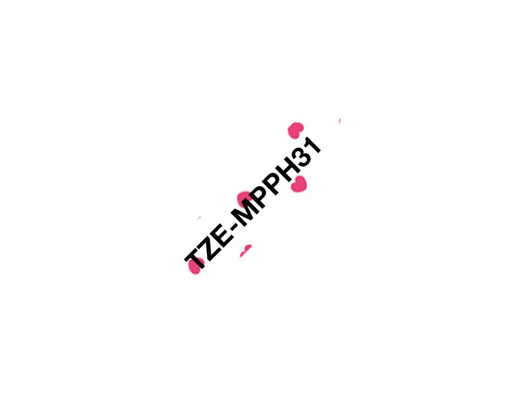 Originální kazeta s páskou Brother TZe-MPPH31 - černý tisk na růžových srdíčkách, šířka 12 mm