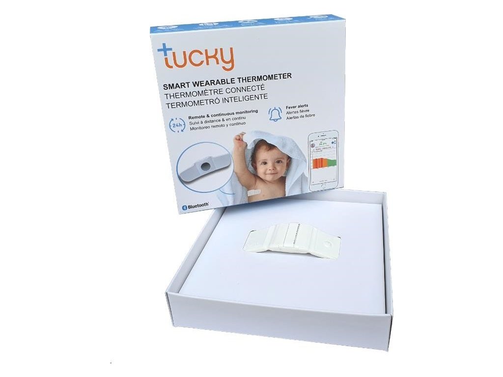 TUCKY – inteligentný teplomer a monitor polohy prináša riešenie tejto situácie. Certifikovaný pre lekárske použitie, jednoducho ho nalepte pod pravú ruku vášho malého pacienta a TUCKY mu každú minútu presne zmeria teplotu a odošle meranie do vášho zariadenia so systémom iOS/Android. Teplotu môžete neustále sledovať, alebo sa môžete spoľahnúť naautomatické upozornenie až vtedy, keď teplota dosiahne určitú hodnotu , a okamžite podať lieky na zabitie horúčky. TUCKY ušetrí vaše dieťa pred nepríjemným utrpením s horúčkou a dodá vám väčší pokoj.