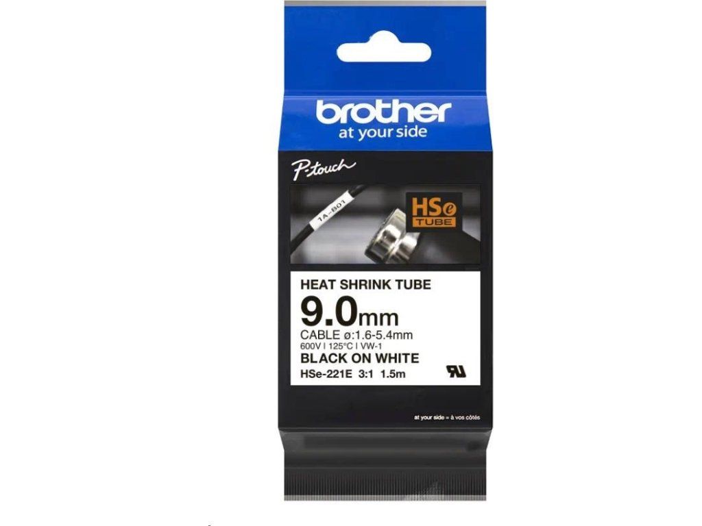 DOPREDAJ, UKONCENE, NAHRADA HSe221E Zmršťovacia bužírka pre popisovače BROTHER HEAT-SHRINK TUBE biela bužírka, čierne písmo rozmer 8.8mm POUŽITIE LEN PRE NASLEDOVNÉ POPISOVAČE !!!!! PT-E300VP PT-E500 PT-E550W PT-P900W PT-P950NW PT-D800W