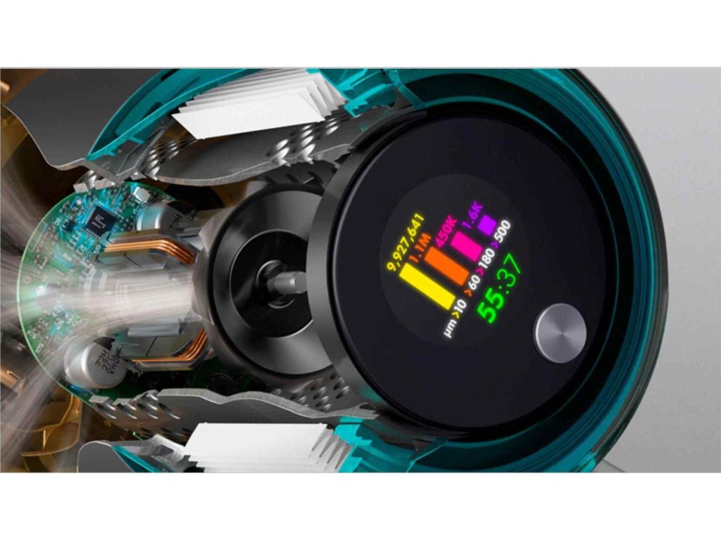 Výkonný, ľahký digitálny motor sa roztočí až na 125 000 otáčok za minútu a vysáva mikroskopický prach a veľké nečistoty.