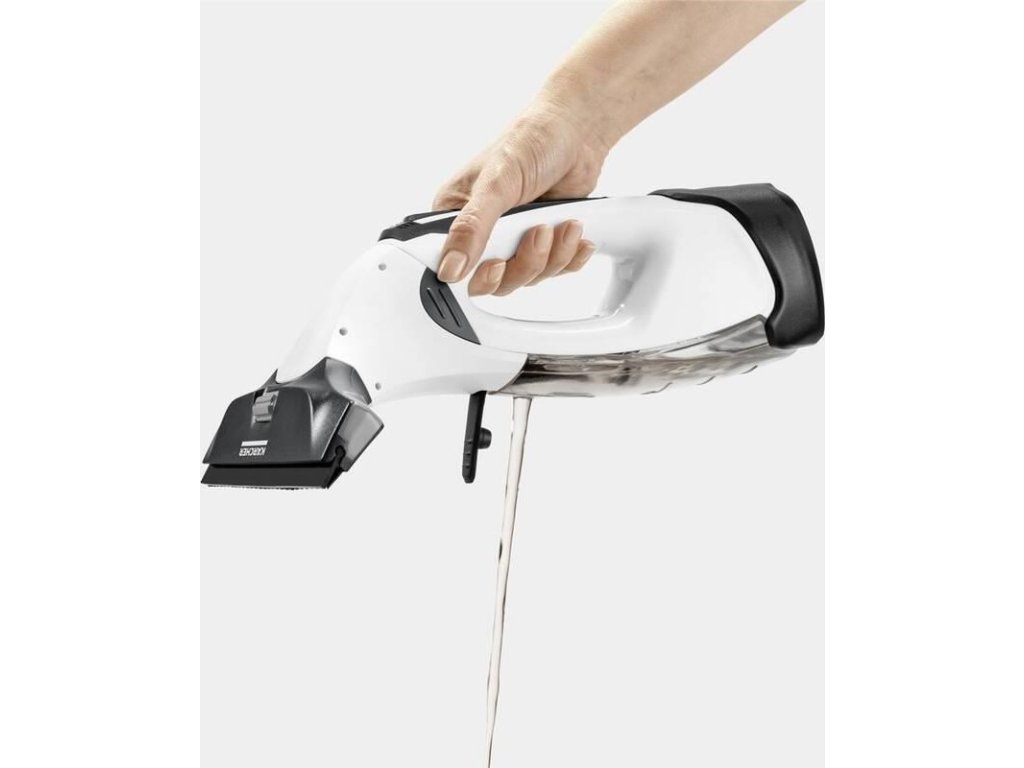 Kärcher WV 5 Plus je zhmotnením efektivity a pohodlia v oblasti čistenia okien. Tento inovátorský čistič okien ponúka nielen bezchybný výsledok čistenia, ale tiež výrazne urýchľuje a zjednodušuje tento inokedy zdĺhavý úkol. Vďaka inteligentnej kombinácii rozprašovacej fľaše a stierky zabezpečí dokonale čisté okná bez šmúh a kvapiek, a to všetko rýchlejšie ako tradičné metódy. Úzka sacia hubica je špeciálne navrhnutá pre malé delené a úzke okná.