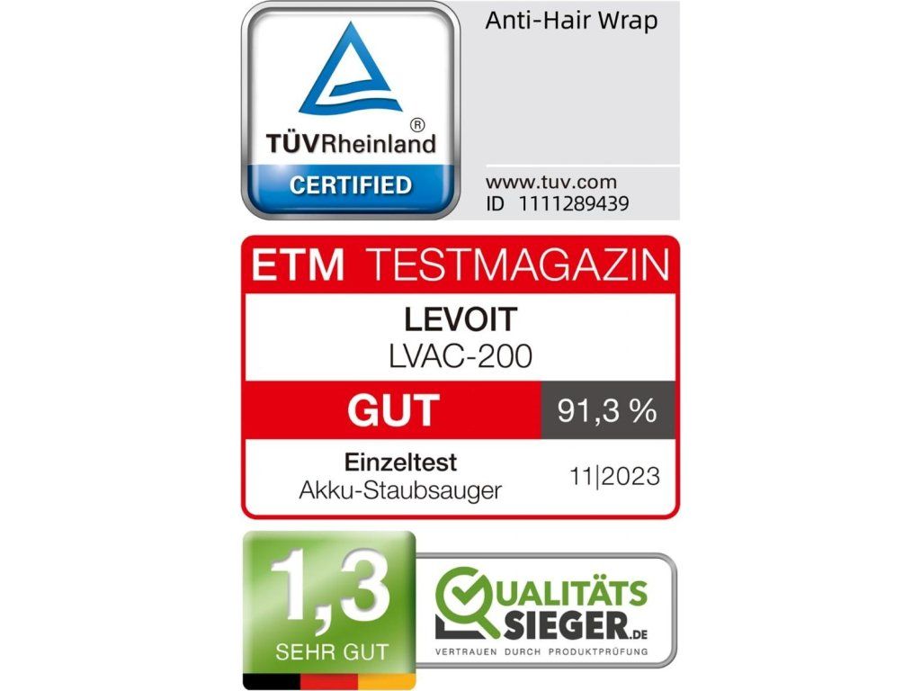 V nezávislom teste nemeckej skúšobne ETM Testmagazin získal model Levoiit LVAC-200 vysoké hodnotenie a známku GUT. V teste bola napríklad nameraná ešte nižšia hladina hluku, ako uvádza výrobca, a to 73 dB v režime ECO a 75 dB v režime Turbo.