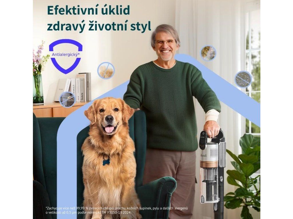 Tyčový vysavač Levoit je navržený, aby maximálně usnadnil úklid vašeho domova, ať už ho sdílíte se čtyřnohým, nebo dvounohým miláčkem. Vysavač je vybaven rotačním kartáčem s kombinací gumových a textilních lamel, který byl navržen tak, aby na něm nedocházelo ke hromadění namotaných vlasů nebo chlupů. Zároveň je ale kartáč efektivní a zachytává maximální množství nečistot. Vysavač pracuje s vyjímatelným akumulátorem s kapacitou 3000 mAh a indikací nabití. Akumulátor lze dobíjet v nástěnné nabíjecí stanici. Motor je s výkonem 240 W nezvykle tichý, při běžném provozu vydává 77,5 dB, v Turbo režimu pak 83,5 dB. Vysavač s plně nabitou baterií dokáže pracovat až 60 minut, což umožní úklid celého obydlí na jedno nabití. Úklid s LVAC 300 je radost díky jeho velmi nízké hmotnosti 1,6 kg. Díky tomu je snadné s vysavačem odstranit i pavučiny ze stropu, prach ze žaluzií nebo nečistoty pod nábytkem. V balení naleznete dlouhou a krátkou násadu, rotační kartáč, 2v1 štěrbinovou hubici, 2v1 hubici na silně znečištěné povrchy a zvířecí srst a 2v1 kombinovanou hubici s kartáčem. Tím máte perfektní sadu nástrojů pro kompletní úklid. Levoit LVAC si hravě poradí se všemi povrchy, ať už jsou to koberce, tvrdé podlahy nebo čalounění. Kartáčový nástavec je navíc vybavený LED světlem, takže umožní práci v tmavých zákoutích, a navíc osvětluje přítomné nečistoty. Vysavač v sobě skrývá 5násobný HEPA filtrační systém, který odstraní 99,99 % částic od velikosti 0,3 mikrometrů – snadno se vypořádá s prachem, pylem, roztoči, zbytky zvířecí kůže a chlupů. Nečistoty se shromažďují v 0,75L nádobě s mechanizmem pro snadné a hygienické vyprazdňování. Filtry i kartáč jsou jednoduše vyjímatelné a omyvatelné.