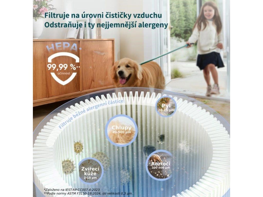 - Až 99,99% záchyt částic nad 0,3 mikrony