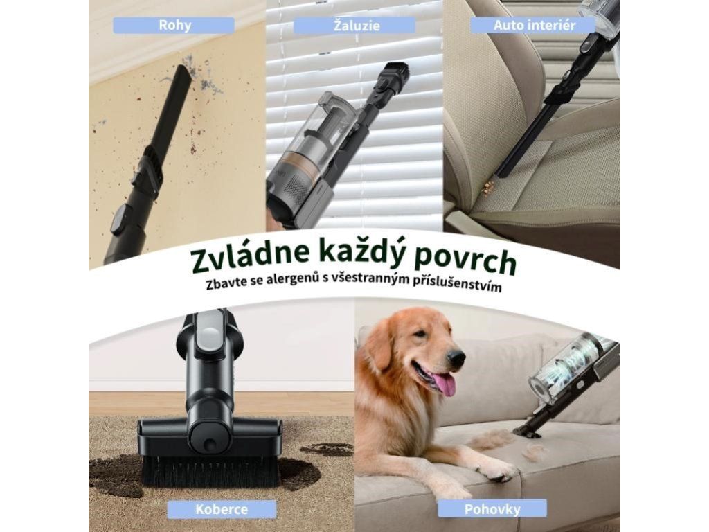 Výkonný tyčový vysavač si poradí se všemi typy povrchů – od tvrdých podlah a koberců až po žaluzie, čalounění i interiér auta. Díky speciálním nástavcům snadno odstraní prach, chlupy i alergeny z těžko dostupných míst. Ideální volba pro důkladný a všestranný úklid celé domácnosti.