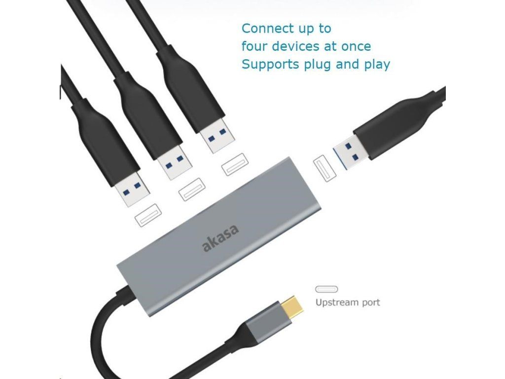 AKASA Hub USB-C 4x USB 3.0 port, hliník