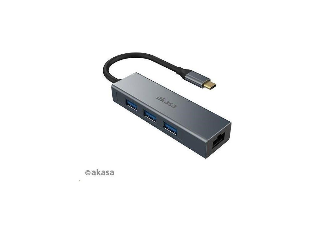 AKASA USB Type-C 4-v-1 rozbočovač s Ethernetom