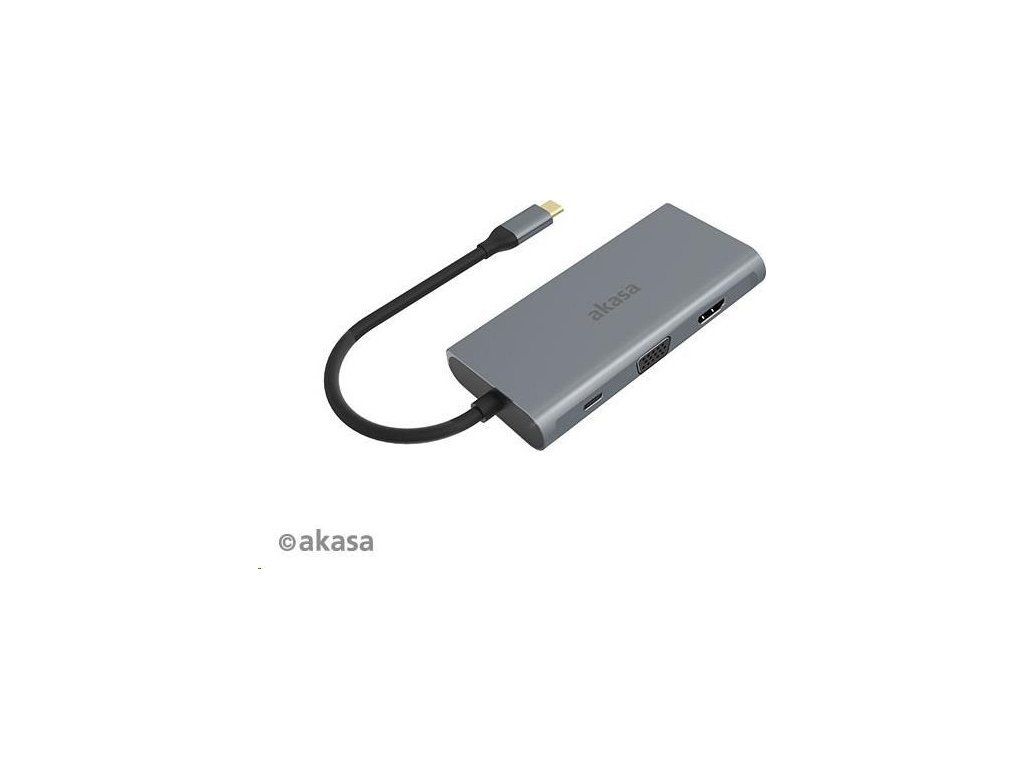 AKASA USB Type-C adaptér 9 v 1 (PD Type-C, HDMI, VGA, 3 x USB 3.0 typ A, RJ45, čítačka kariet SD a Micro SD)