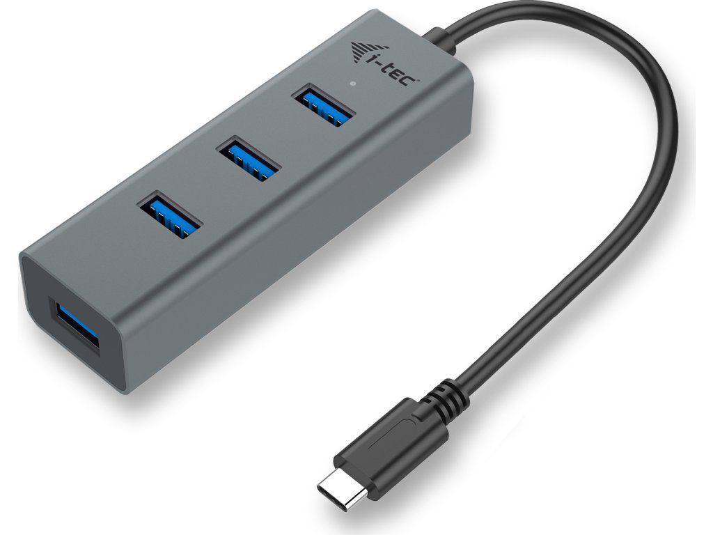 i-tec USB-C Metal 4-portový HUB, 4x USB 3.0 port na pripojenie zariadenia USB-A k novému konektoru USB-C, pre notebook tablet smartfón PC s konektorom USB-C, kompatibilný s Thunderbolt 3, Windows, Mac OS, Android, Chrome