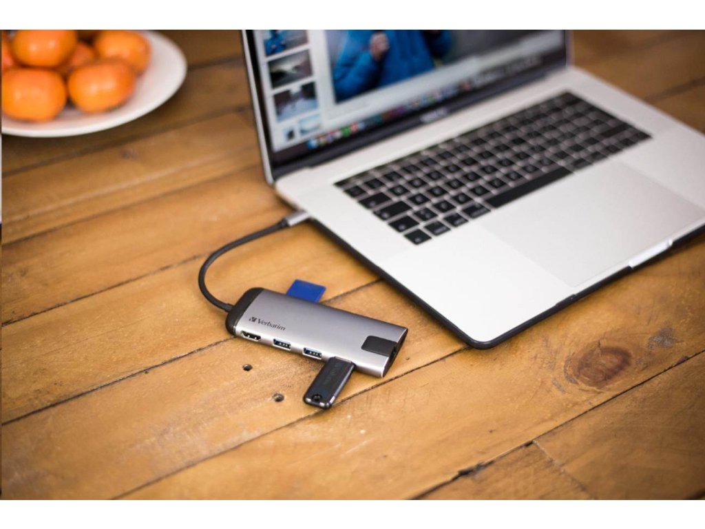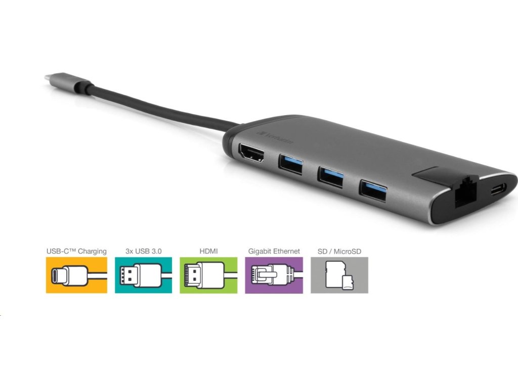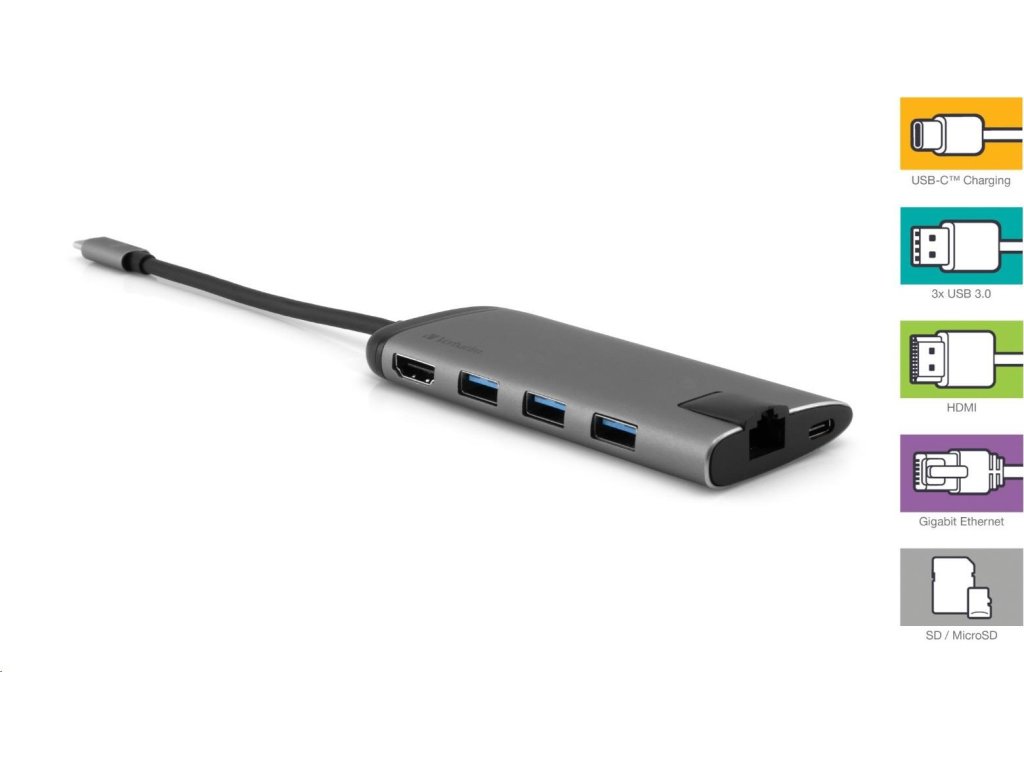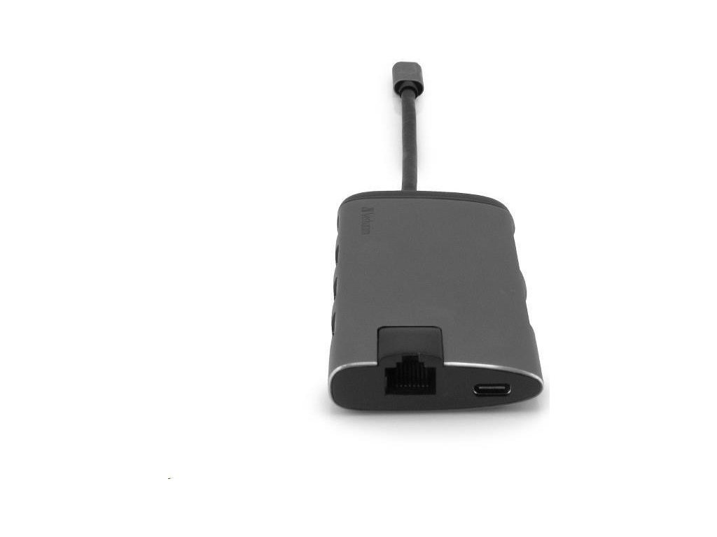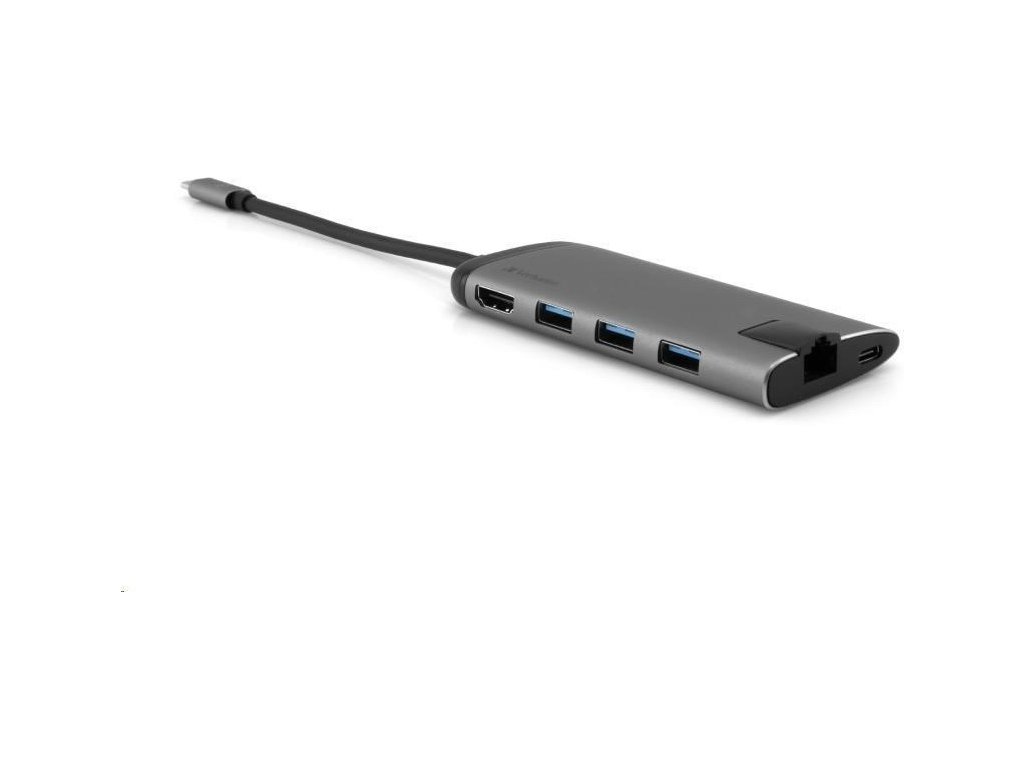 VERBATIM 49142 Multiportový HUB USB-C, 3x USB 3.0, 1x USB-C, HDMI, LAN, SD, microSD, šedý dok