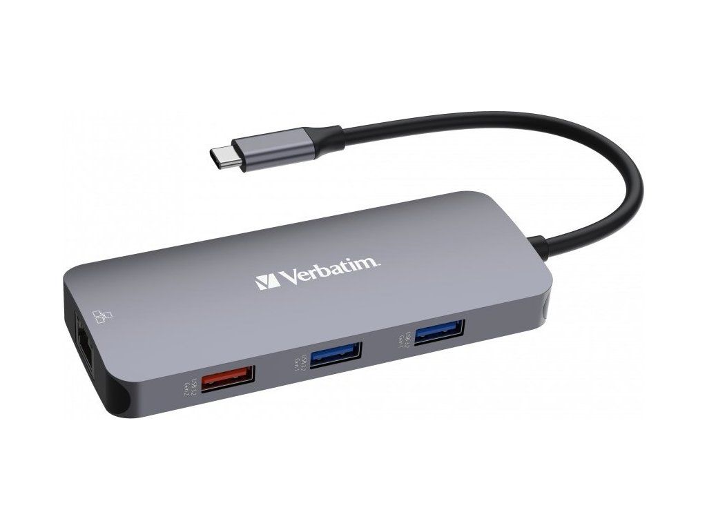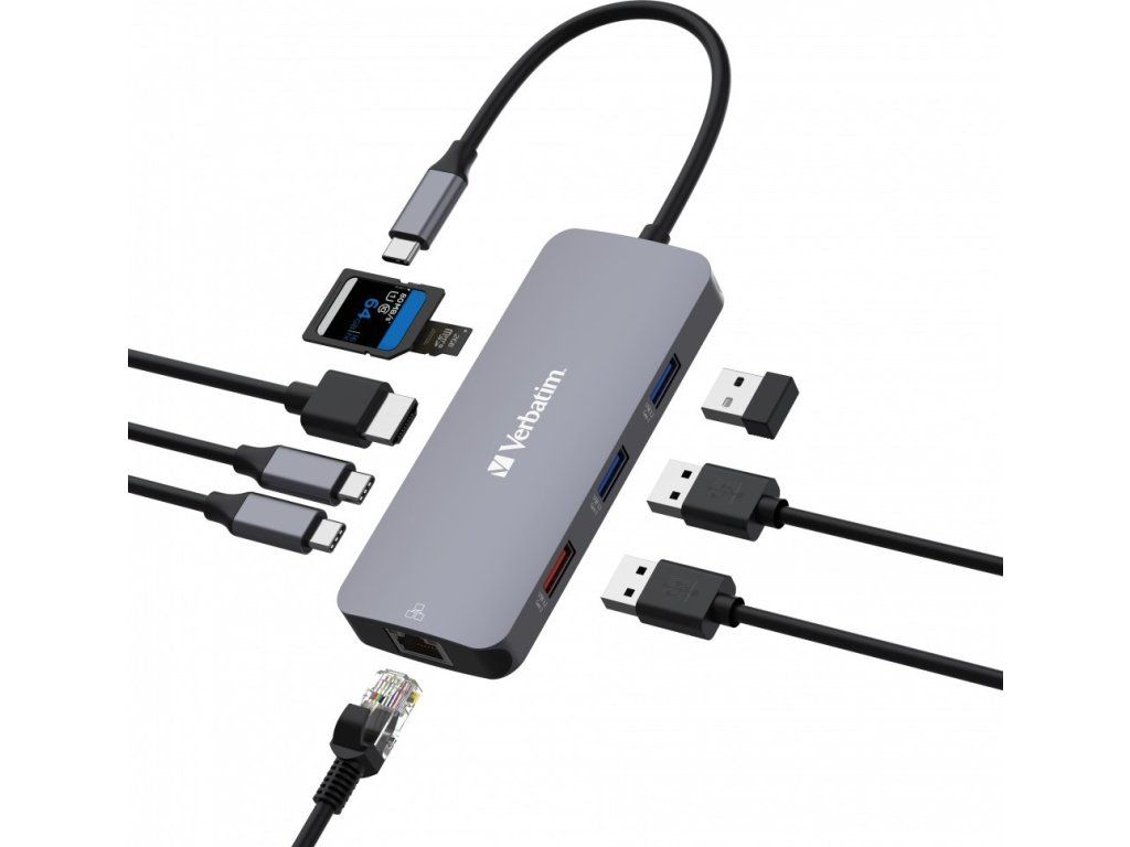 VERBATIM Hub USB-C Pro Multiport 9 Port, 3x USB 3.2, 2x USB-C, HDMI, RJ45, microSD/SD, šedá