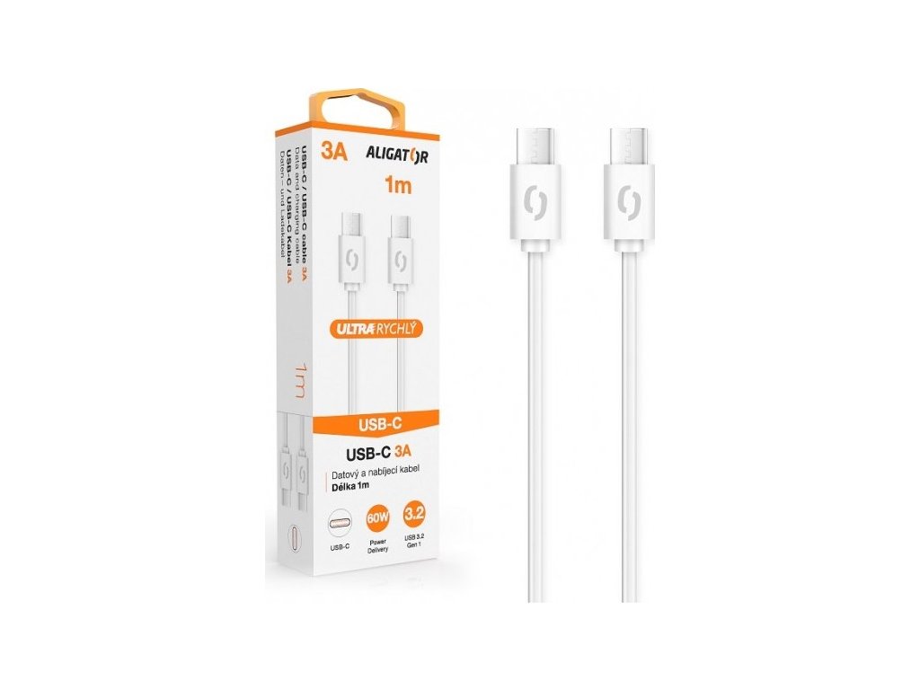 ALIGATOR Datový kabel POWER 3A, USB-C/USB-C, bílý