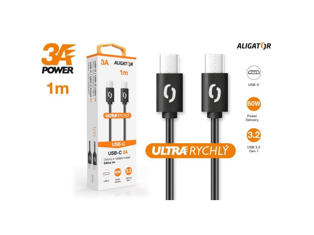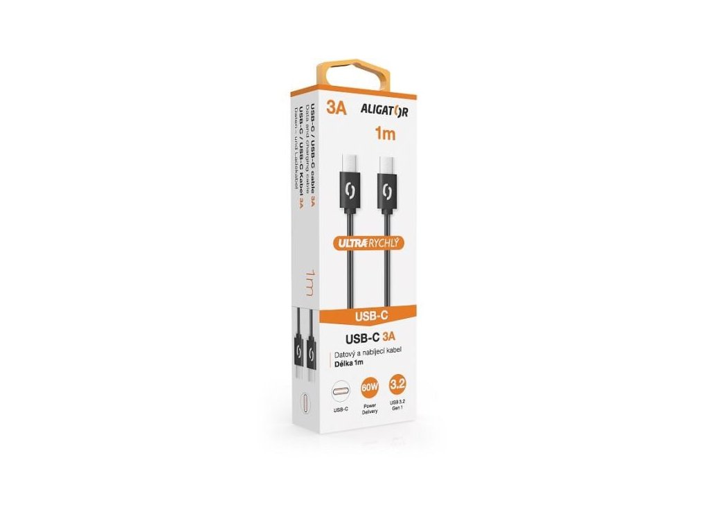 ALIGATOR datový kabel POWER 60W, USB-C/USB-C 3A, délka 1 m, černá