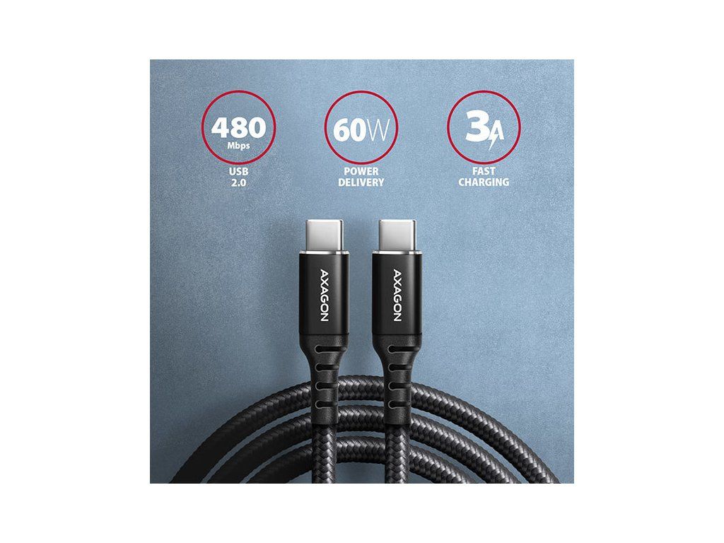 AXAGON BUCM-CM10AB, HQ kábel USB-C <-> USB-C, 1 m, USB 2.0, PD 60W 3A, ALU, opletenie, čierny