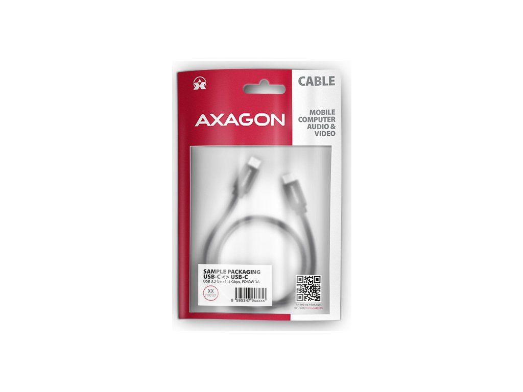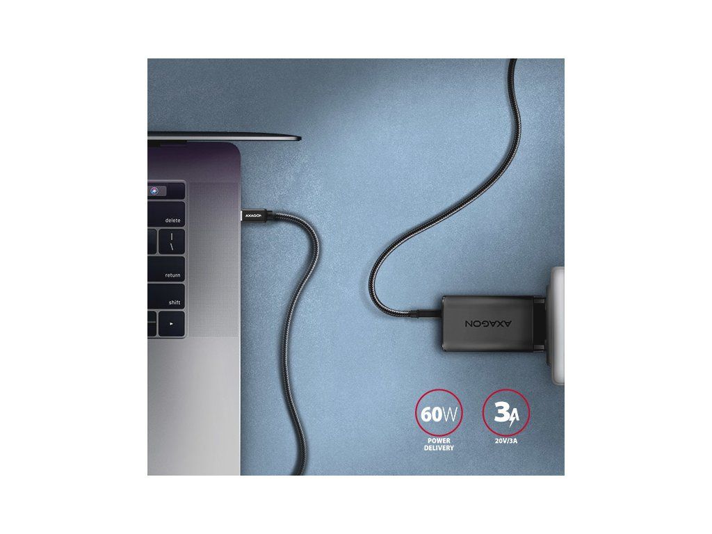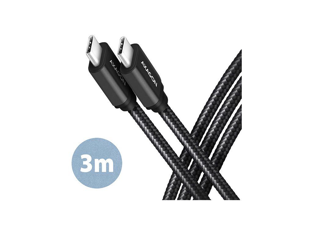AXAGON BUCM3-CM30AB, SPEED kábel USB-C <-> USB-C, 3 m, USB 3.2 Gen 1, PD 60W 3A, ALU, opletenie, čierny