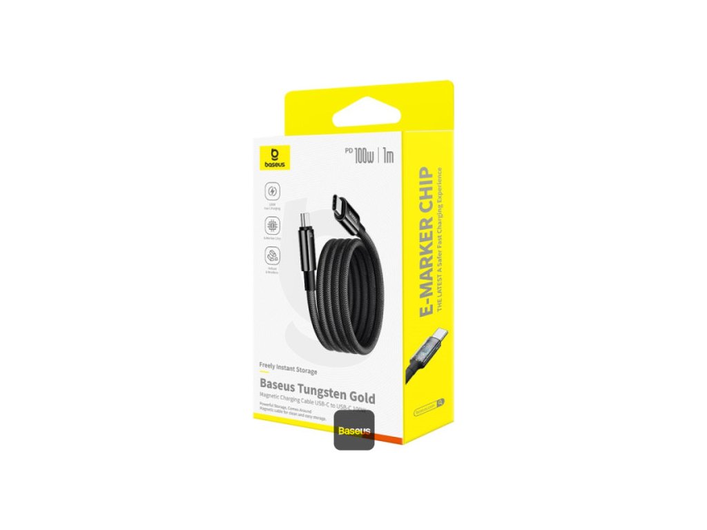 Baseus datový magnetický kabel Tungsten Gold USB-C/USB-C 1m 100W černý