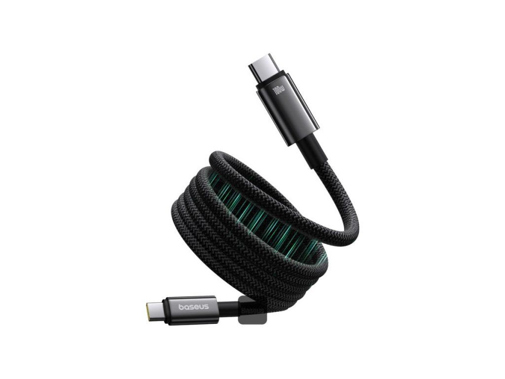 Baseus Tungsten Gold Magnetický kabel proti zamotání Type-C na Type-C, 100W PD Rychlé nabíjení, Vysokorychlostní přenos, Nylonové opletení, 5A, 1M – Černá