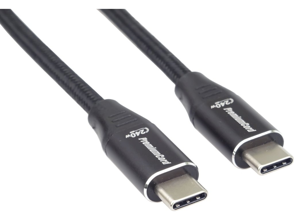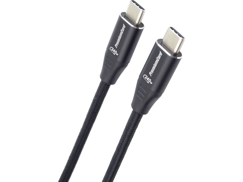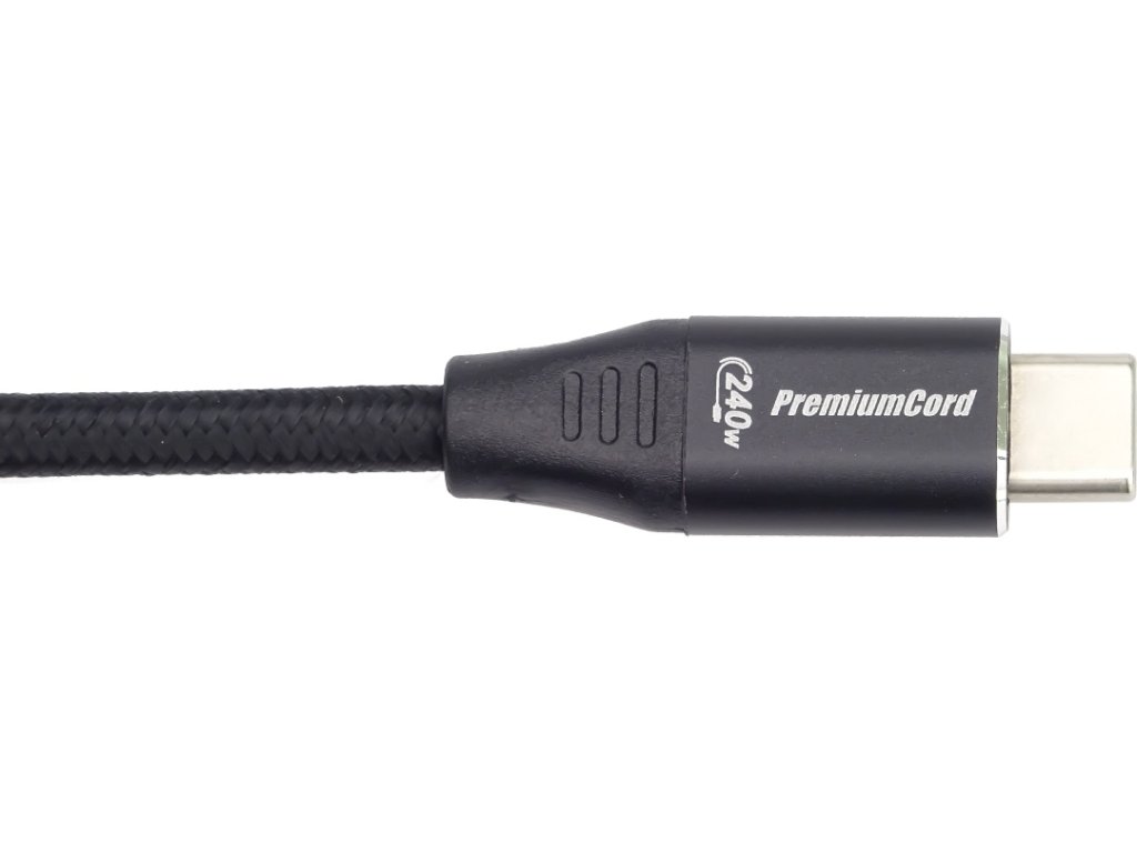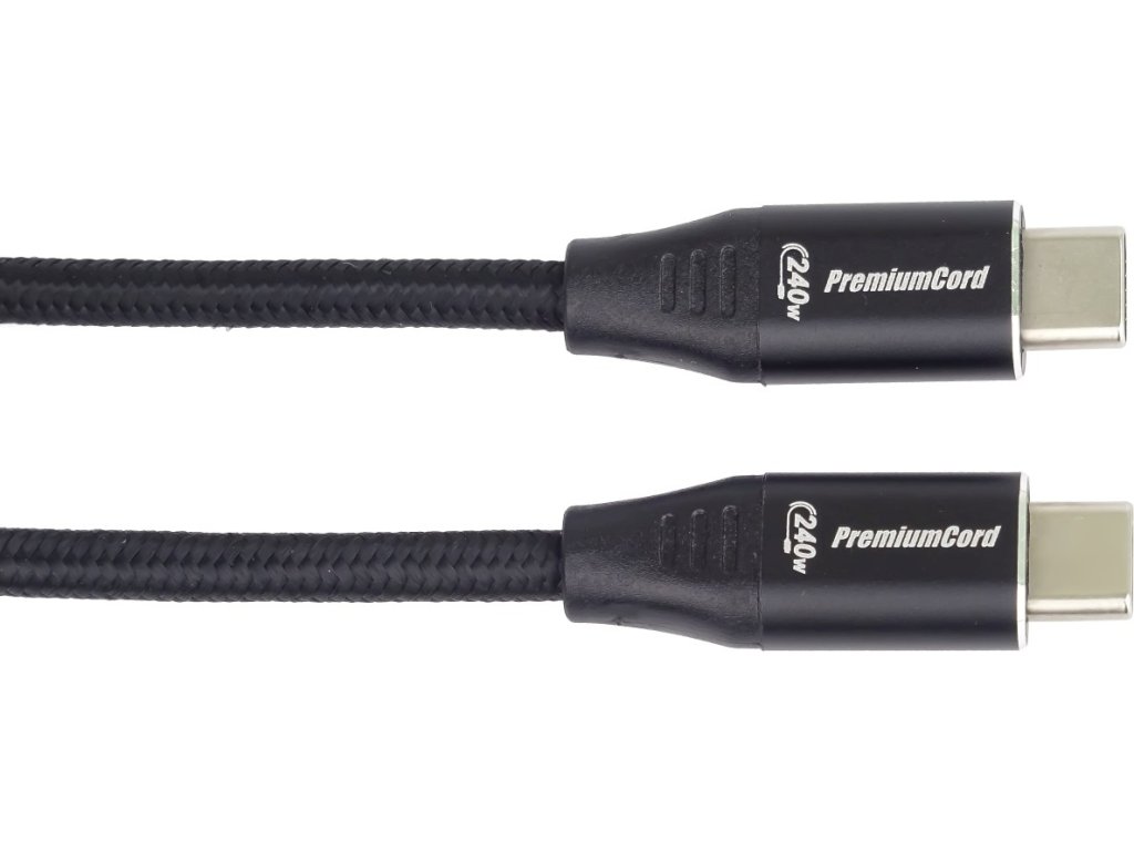 PREMIUMCORD Kabel USB-C M/M, 240W 480Mbps černý bavlněný oplet, 2m