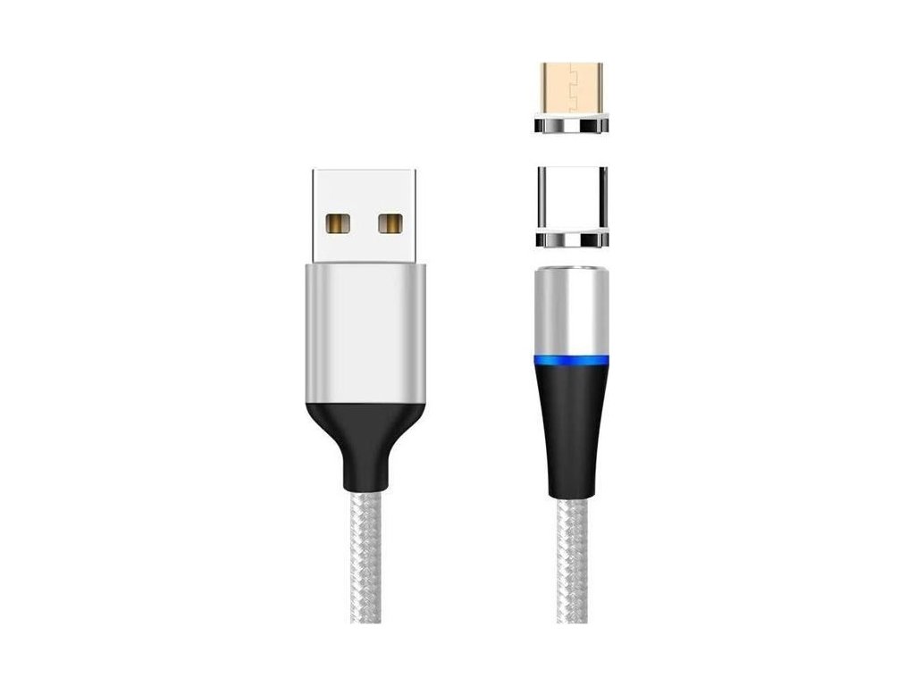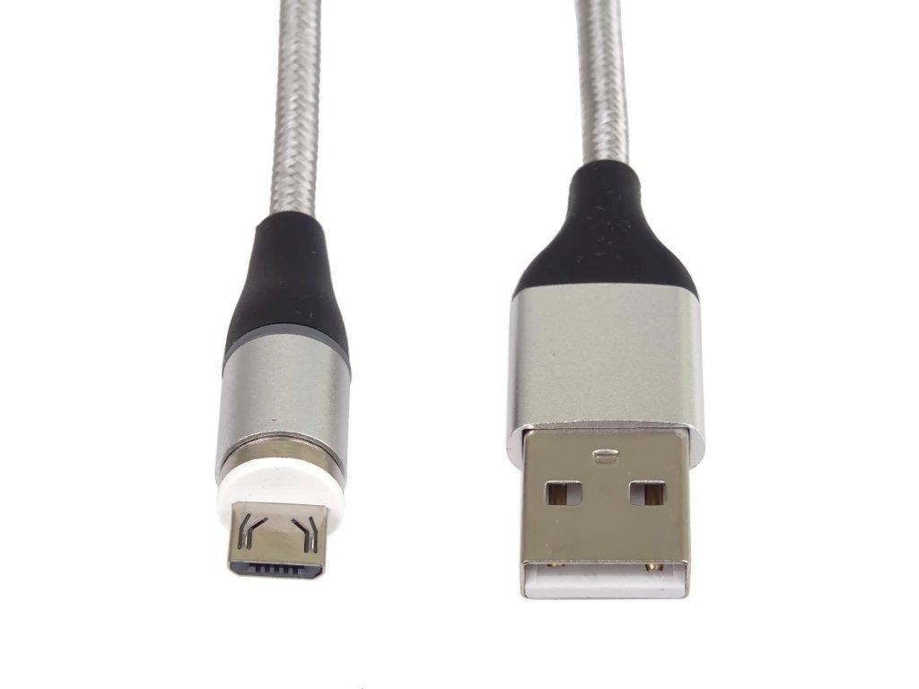 PremiumCord Magnetický micro USB a USB-C nabíjecí a datový kabel, 1m, stříbrná