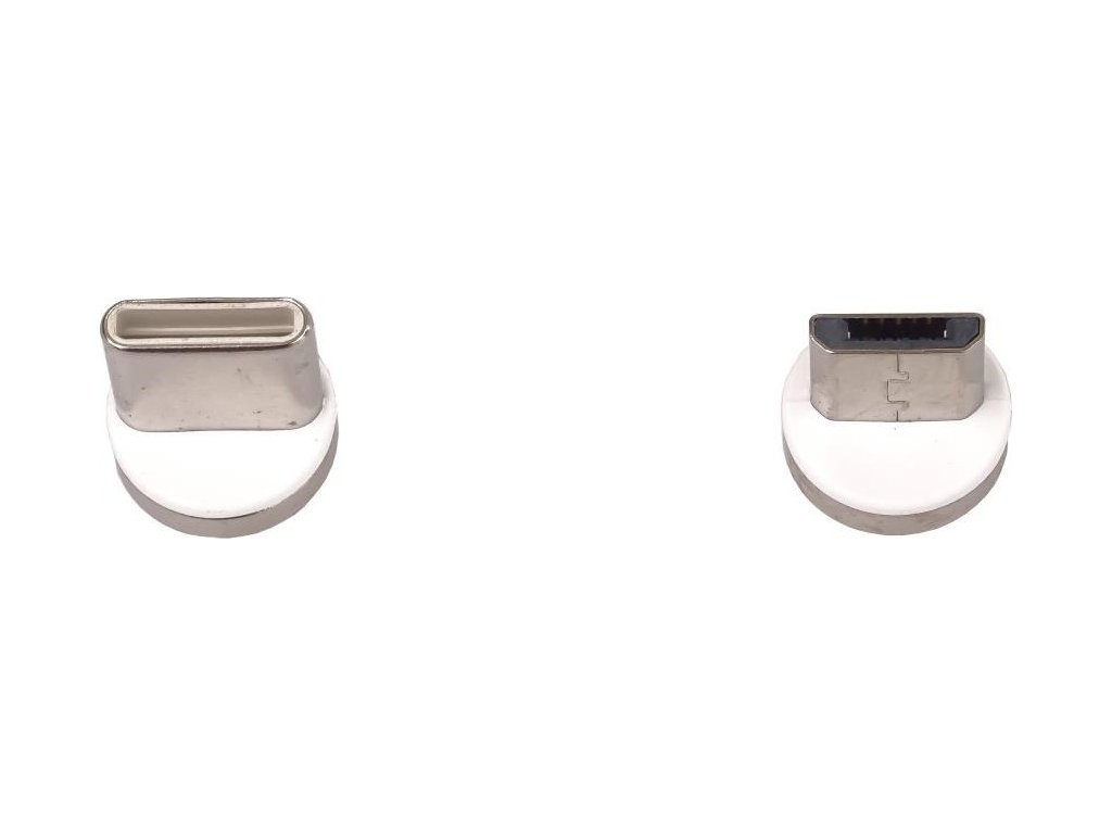 - Kábel obsahuje dve vymeniteľné magnetické koncovky Micro USB a USB-C