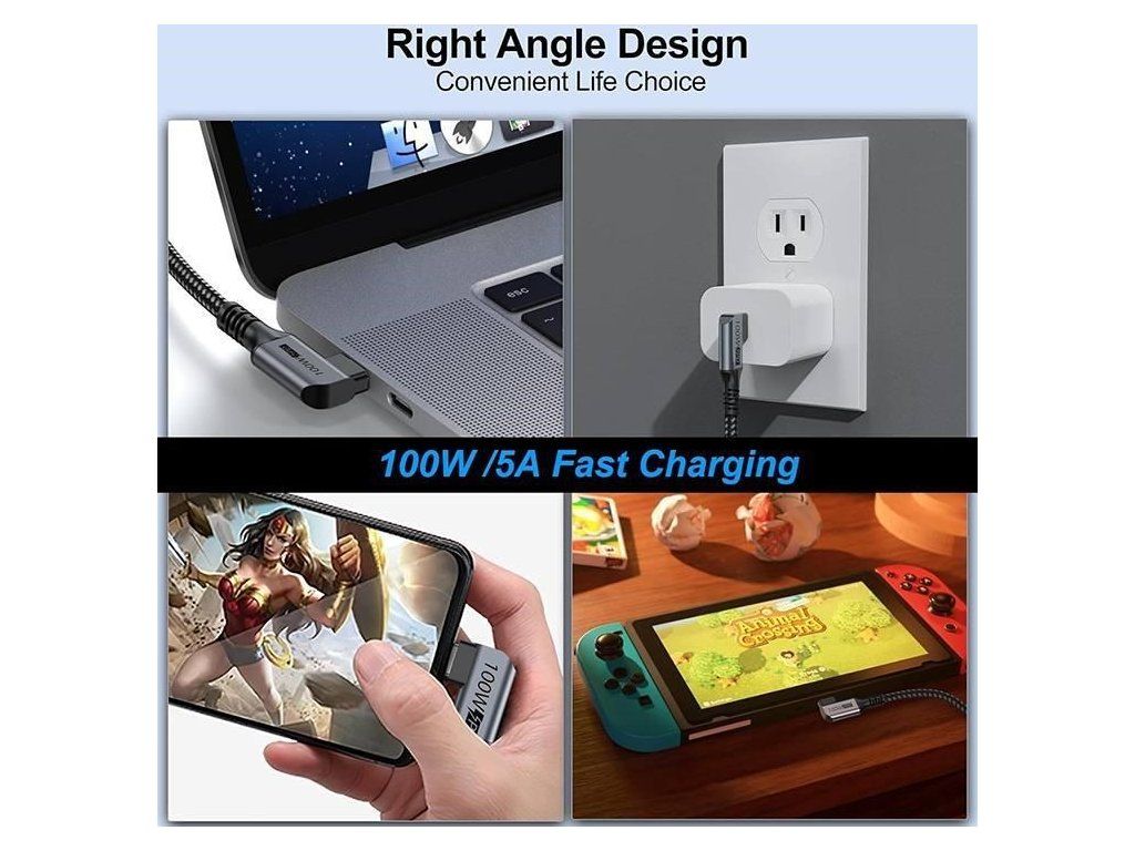 PremiumCord USB-C 2x zahnutý kabel ( USB 3.2 GEN 2x2, 5A, 100W, 20Gbit/s ) bavlněný oplet, délka: 2m
