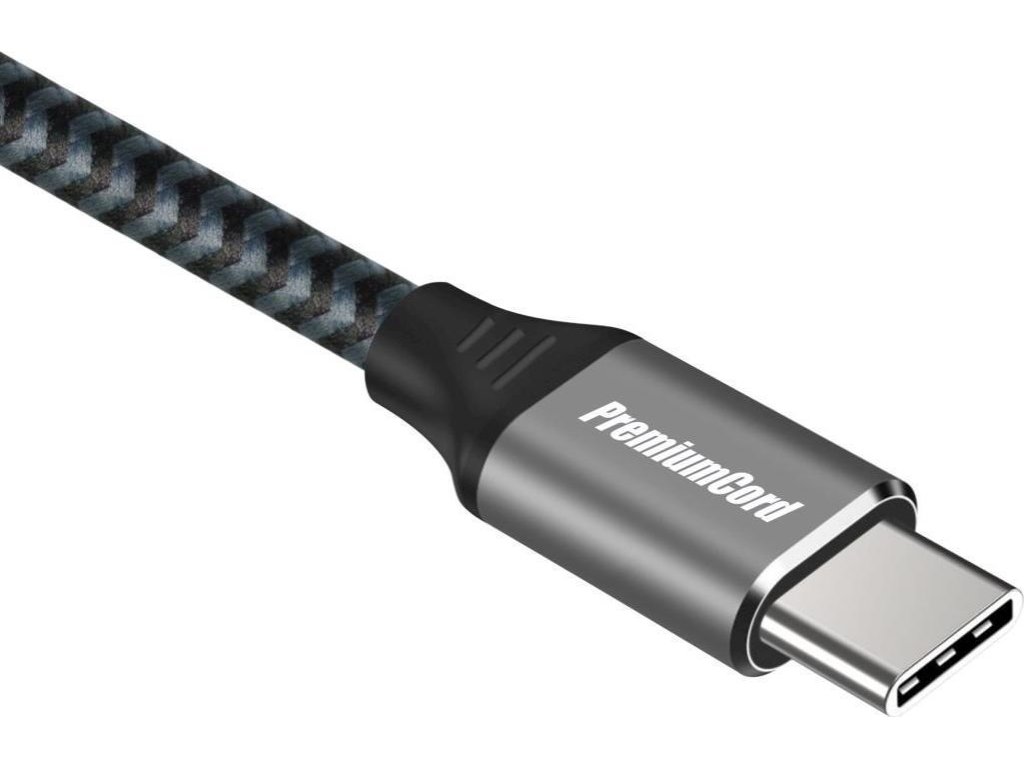 PREMIUMCORD Zahnutý kabel USB-C (USB 3.2 Gen 2, 3A, 60W, 20Gbit/s), hliníkové krytky konektorů, 0,5m