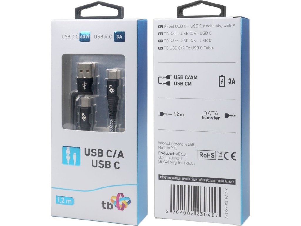 TB Touch 2v1 kabel USB-C - USB C s USB A, 1,2m