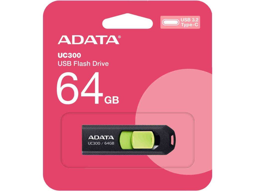 ADATA Flash Disk 64GB UC300, USB-C 3.2, černo-zelená