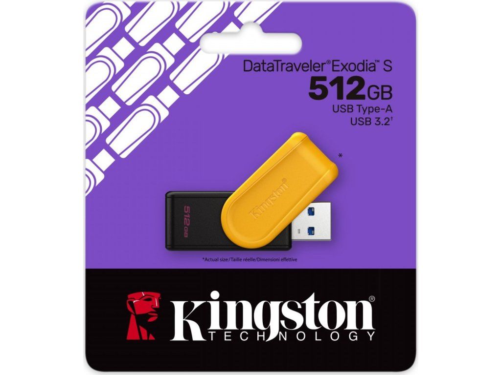 Kingston DataTraveler Exodia S je základné úložné riešenie kompatibilné s USB 3.2 Gen 1 pre notebooky, stolové počítače a ďalšie digitálne zariadenia. DT Exodia S umožňuje jednoduchý prenos a pohodlné uloženie dokumentov, videí, hudby a ďalších dát. Disk DT Exodia S s kapacitou až 512 GB má otočné krytky dostupné v rôznych farbách. Vďaka svojmu dizajnu je šikovným riešením na uloženie dát na cestách v práci, škole alebo doma. Na disk DT Exodia S sa vzťahuje päťročná záruka, bezplatná technická podpora a legendárna spoľahlivosť spoločnosti Kingston.