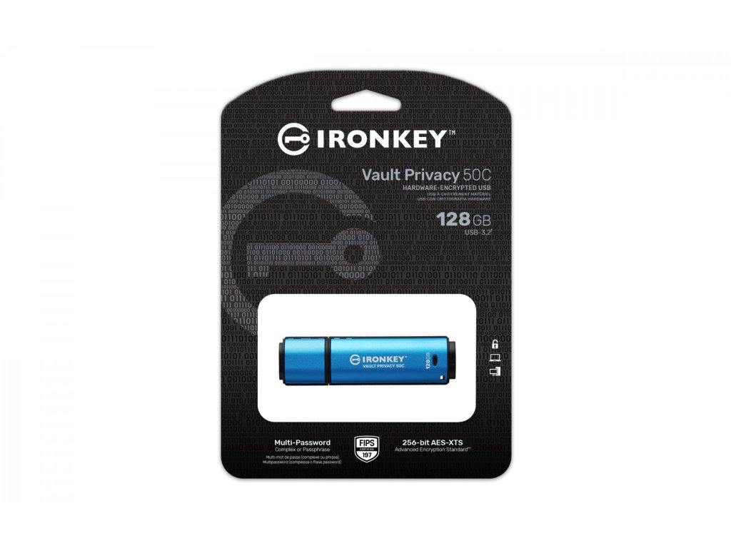 Kingston IronKey™ Vault Privacy řady 50C jsou špičkové disky USB Type-C®, které zajišťují zabezpečení Enterprice-Grade úrovně pomocí 256bitového hardwarového šifrování AES s certifikací FIPS 197 v režimu XTS, včetně zabezpečení proti BadUSB pomocí digitálně podepsaného firmwaru a ochrany proti útoku na heslo hrubou silou. Na VP50 byly provedeny zkoušky prolomení pro zabezpečení na Enterprice-Grade úrovni Vzhledem k tomu, že se jedná o šifrované úložiště pod fyzickou kontrolou uživatele, je řada VP50 při ochraně dat lepší než používání internetu a cloudových služeb.
