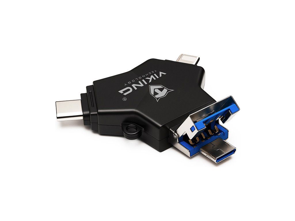 USB Flash disk Viking 3.0 4v1 s konektorom Lightning/Micro USB/USB/USB-C, 128 GB, čierna