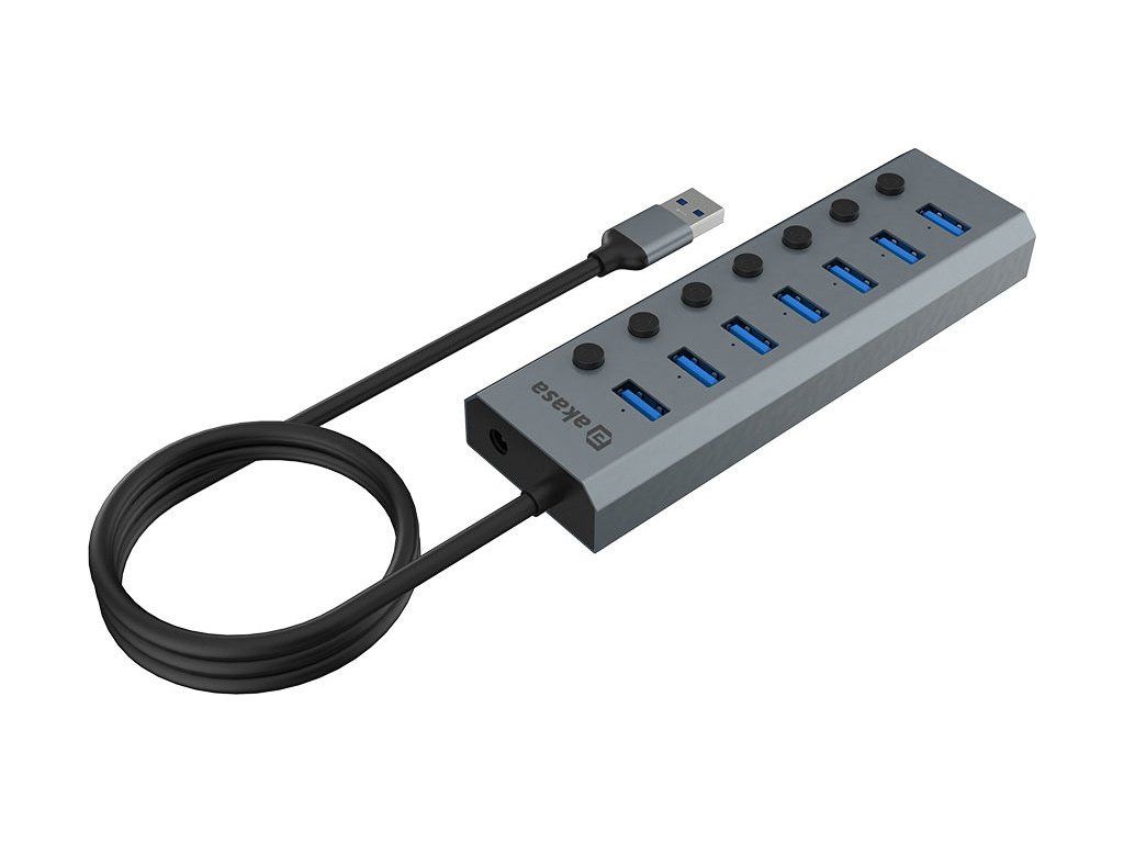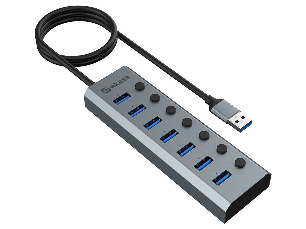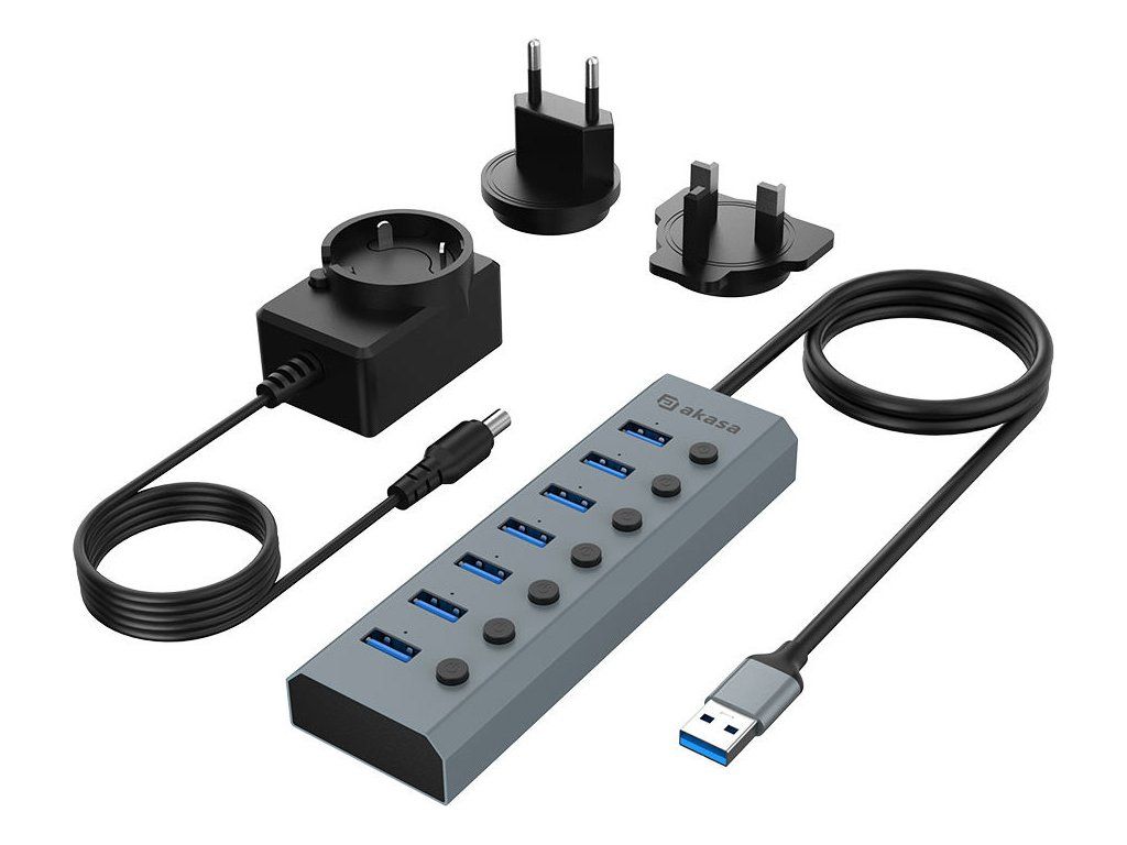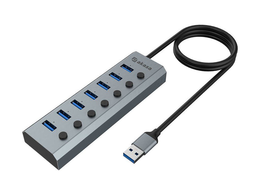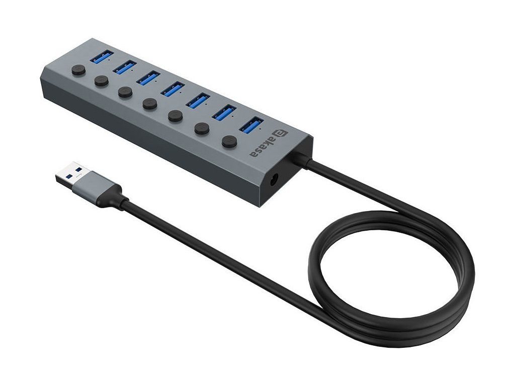 AKASA Hub 7 v 1, USB-A 3.2 Gen 1, šedá
