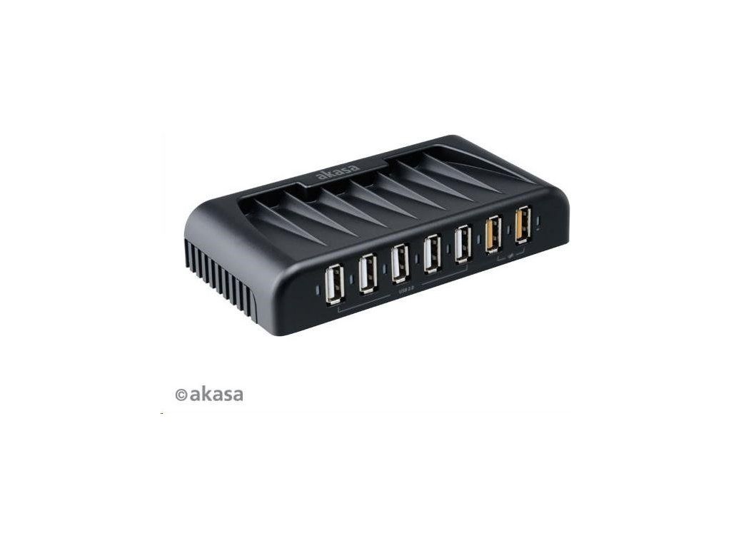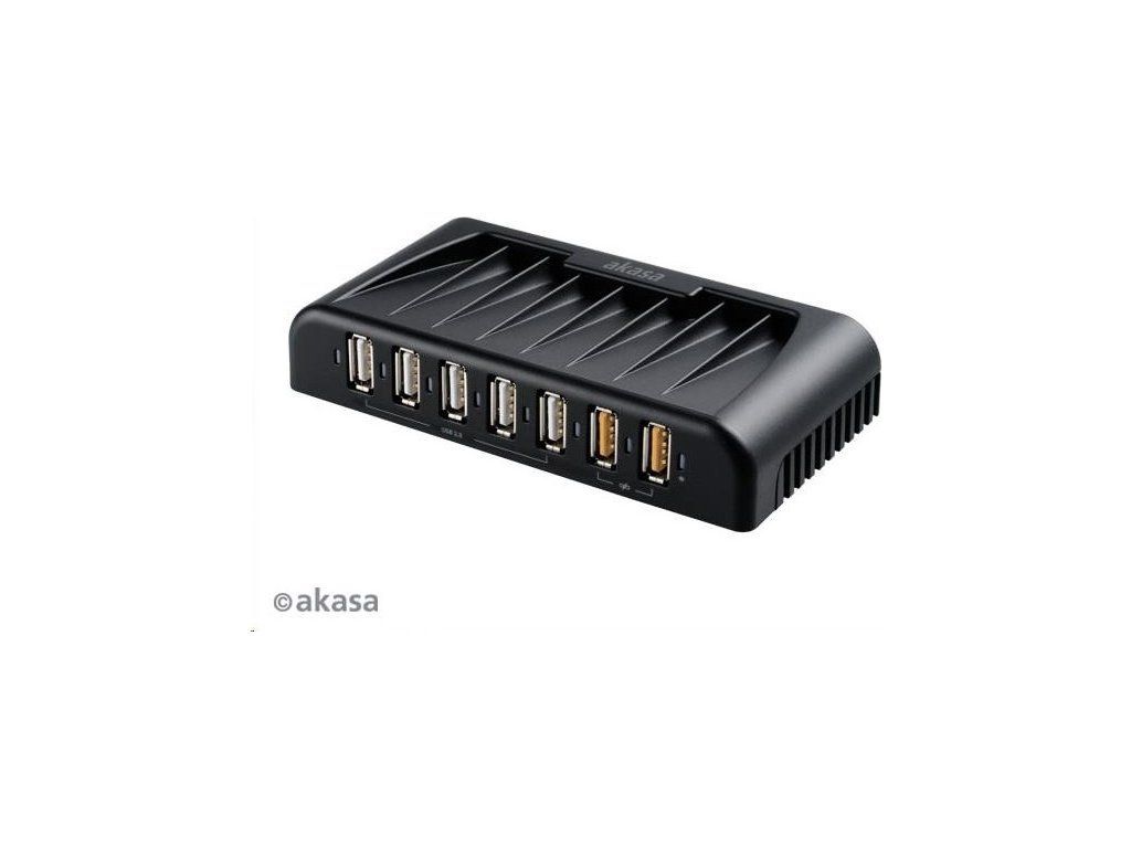 AKASA HUB USB Connect 7FC, 5x USB 2.0, 2 nabíjacie porty USB, externé, s napájacím adaptérom