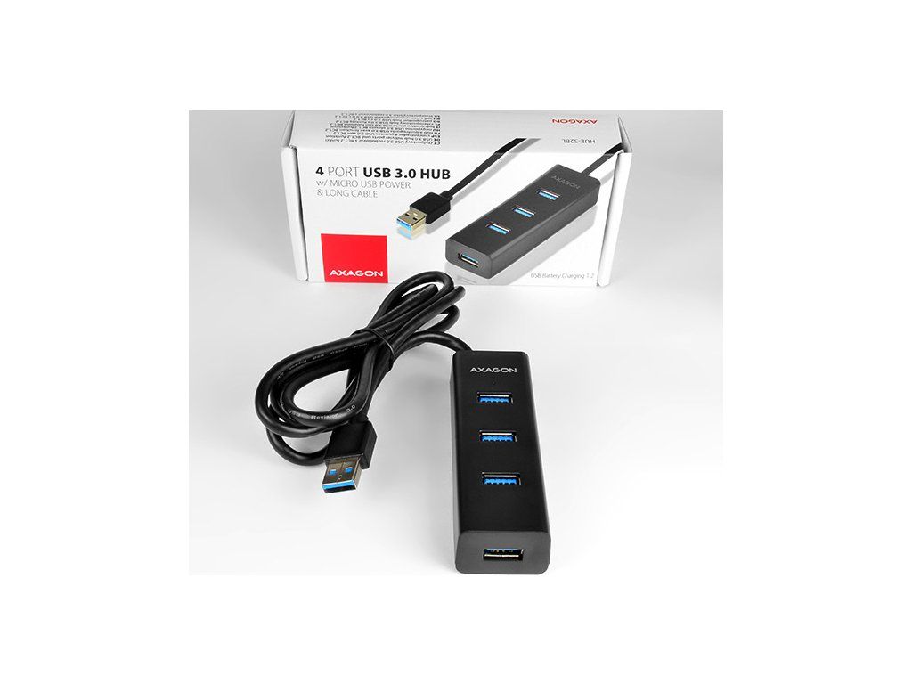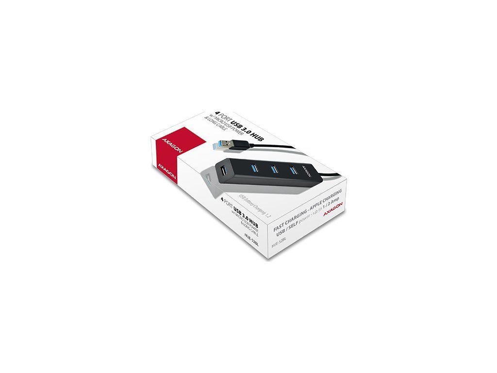 AXAGON HUE-S2BL, 4x USB 3.0 CHARGING hub, micro USB nap. konektor, kábel USB-A 1.2m
