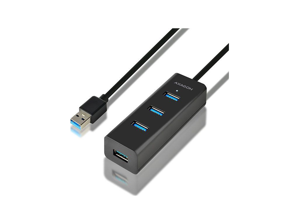 4-portový USB 3.0 rozbočovač AXAGON HUE-S2BL s káblom USB 1.2 m, možnosť externého napájania a podpora rýchleho nabíjania na všetkých portoch. Ľahký, malý rozbočovač s elegantným matným plastovým telom rýchlo a jednoducho pripojí k počítaču až štyri zariadenia USB súčasne. Opravené 1.kábel USB s dĺžkou 2 m je vhodný na použitie so stolným počítačom.
