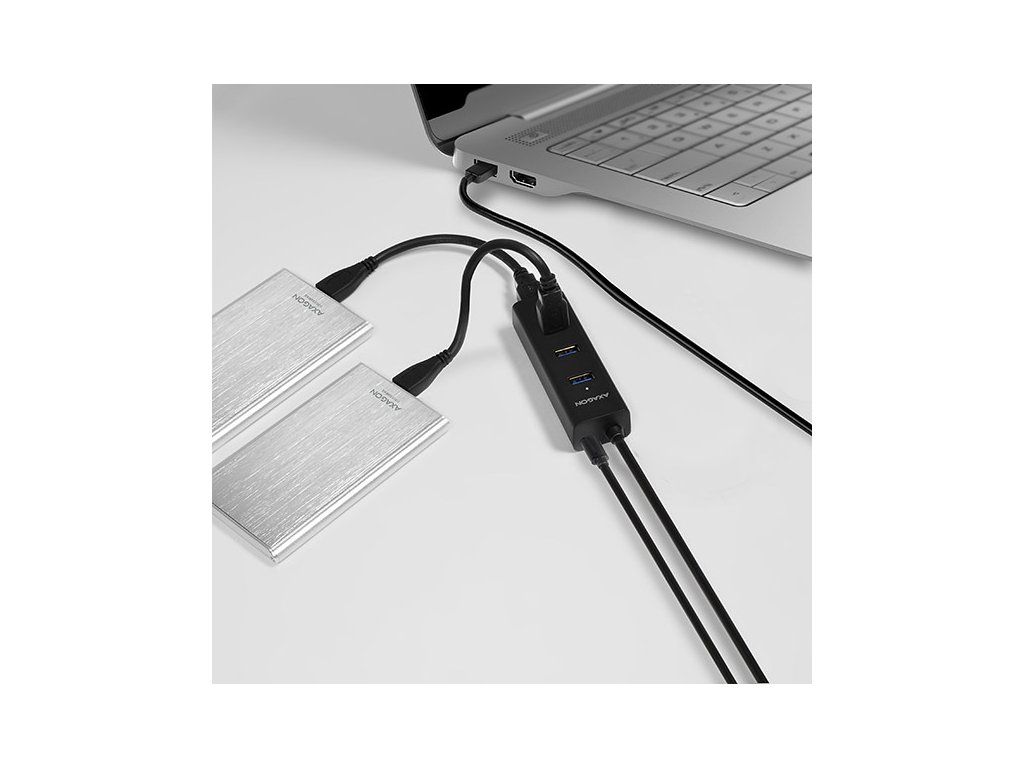 K rozbočovaču možno trvalo pripojiť viacero externých diskov bez externého napájania. Po pripojení napájacieho zdroja možno súčasne používať tri externé disky.