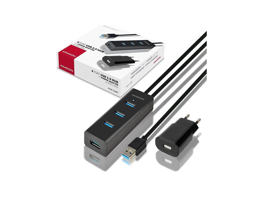 AXAGON HUE-S2BP, 4x USB 3.0 CHARGING hub, vč. AC adaptéru, kabel USB-A 1.2m