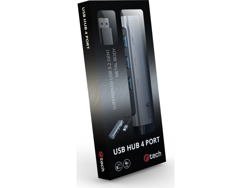 HUB USB C-tech UHB-U3-AL, 4x USB 3.2 Gen 1, hliníkové telo
