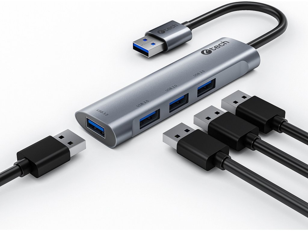 C-tech UHB-U3-AL je kompaktný USB hub s ľahkou a odolnou hliníkovou konštrukciou. Je vybavený 4 portami s rozhraním USB 3.2 Gen1. a maximálnou prenosovou rýchlosťou až 5Gb/s (10× rýchlejší ako USB 2.0). Je ideálnym riešením na rozšírenie dostupných USB portov pre notebooky, ultrabooky a iné zariadenia s obmedzeným počtom USB portov. Veľmi jednoducho tak svoje zariadenie rozšírite o ďalšie periférie, ako sú myši, USB dátové úložiská, externé disky. Hub podporuje technológiu Plug & Play, takže stačí ho pripojiť k zariadeniu a počkať na automatickú inštaláciu predvolených ovládačov bez potreby špeciálnych ovládačov.
