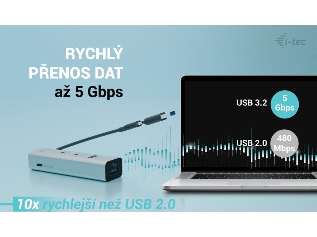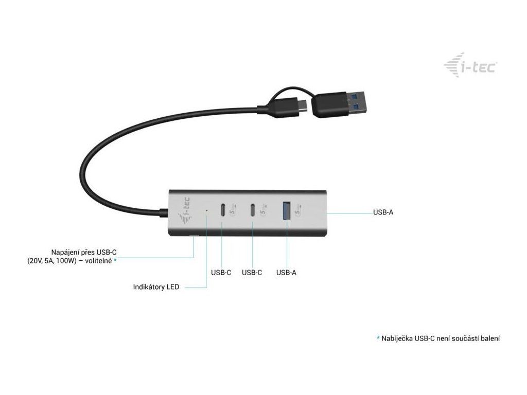 i-tec Univerzálny nabíjací kovový HUB 2xUSB-C + 2x USB-A port + Power Delivery 85W