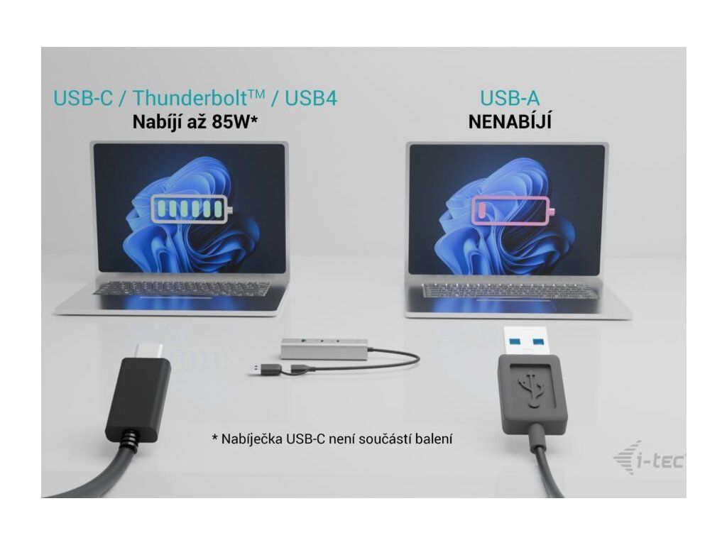 - HUB môže nabíjať váš notebook/tablet až 85W