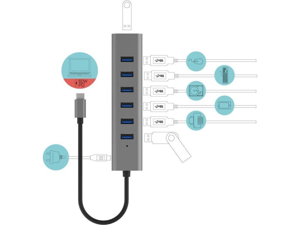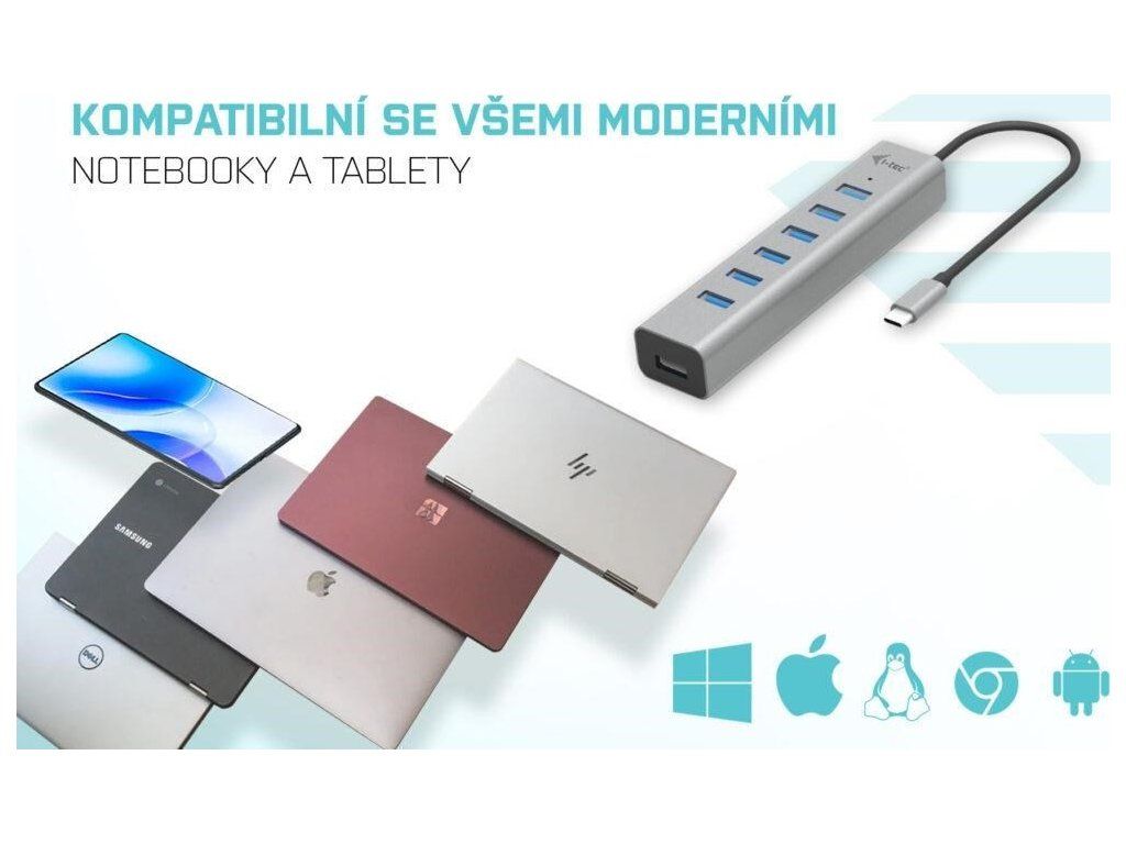 - HUB podporuje všetky bežné súčasné operačné systémy (Windows, macOS, Linux, Android, Chrome OS, iPadOS)