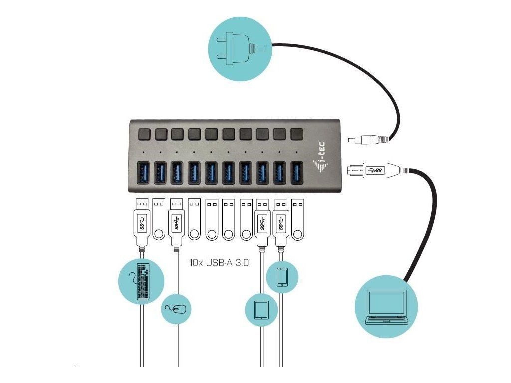 i-tec USB 3.0 Nabíjací HUB 10 portov + napájací adaptér 48 W